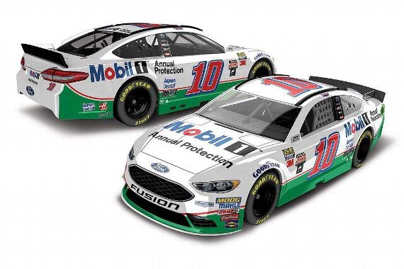 Clint Bowyer #14 Mobil 1 Ford Fusion-New scheme for 2017, white top, red and white stripe across side, blue bottom. A