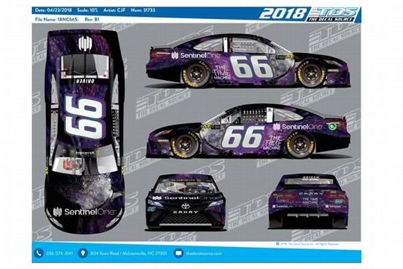 Timmy Hill #66 Sentinel One Chevy Camaro-New sponsor for 2018, black with blue and gray designs on sides. A-