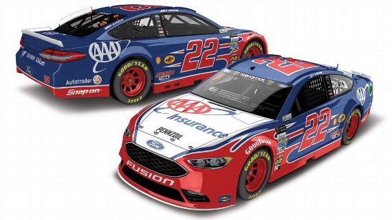 Brad Keselowski #2 Discount Tire Bruce Halle Ford Fusion-New scheme for 2018, same as discount tire but with Bruce Halle tribute on hood. A