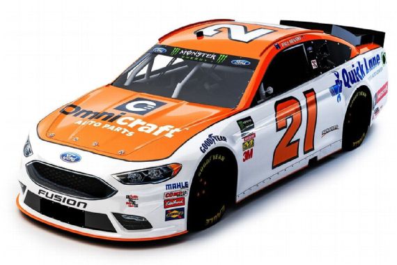 Trevor Bayne #6 Ford EcoBoost Ford Fusion–New scheme for 2018, black replaces red, more toned down, with white rear. B+
