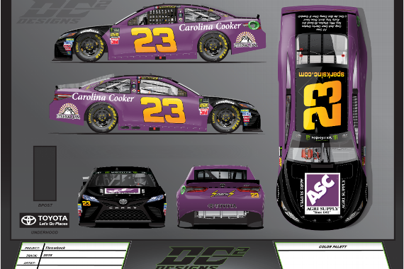 Jeffery Earnhardt #96 Nine Line Apparel Throwback Toyota Camry–New scheme for 2018, based on Dale Earnhardt, Sr’s 1978 Cardinal Tractor Ford. A