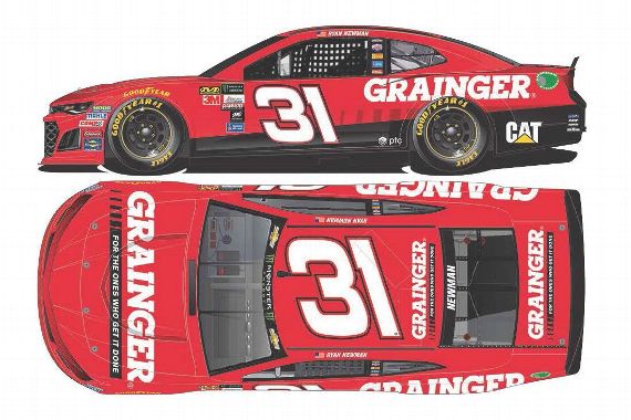 Austin Dillon #3 AAA Chevy Camaro–New scheme for 2018, all red, with white stripe pattern on sides. A