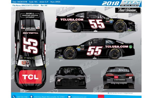 Reed Sorenson #55 Harrah’s Casino Chevy Camaro-New sponsor for 2018, black with white logos on sides. A