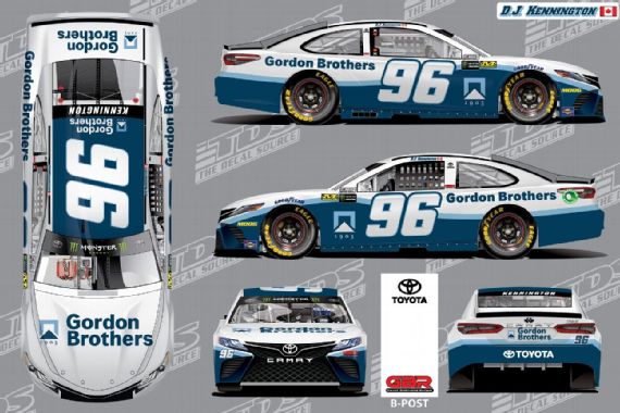 DJ Kennington #96 Gordon Brothers Chevy Camaro-New sponsor for 2018, blue wave pattern on sides, and blue roof, white on sides. B-