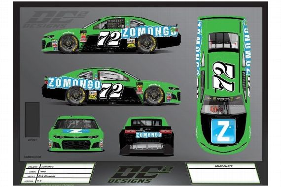 Corey LaJoie#72 Zomongo Chevy Camaro-New scheme for 2018, black front, green rear, Zomongo logos on sides and hood. F