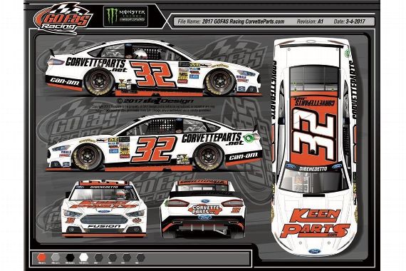 Landon Cassill #00 Dari-O Chevy Camaro-New sponsor for 2018, red with green and white stripes on sides. B+