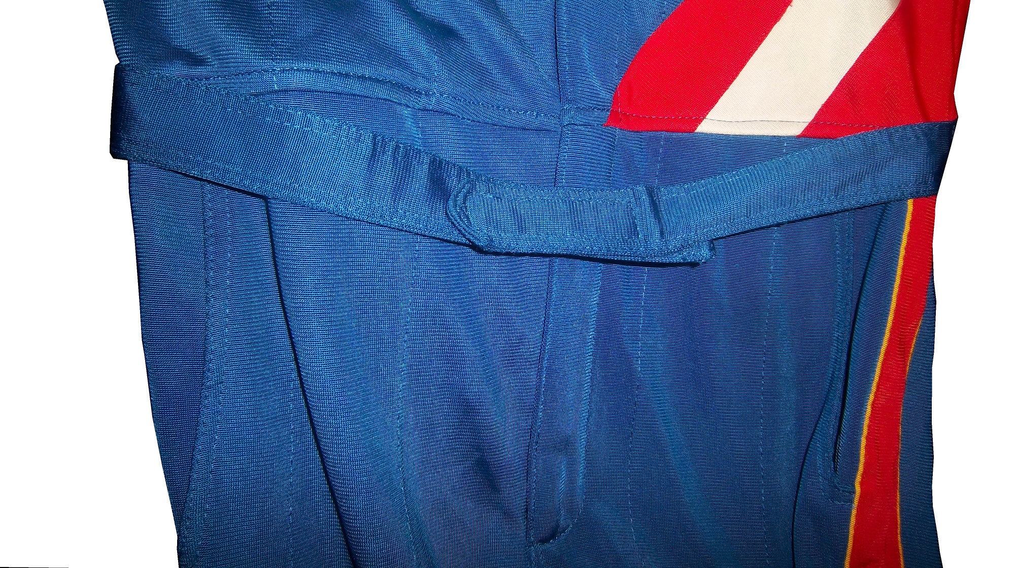 This Lake Speed suit from 1997 is store bought, as opposed to custom designed, and it has no gussets. This suit would have some restriction of movement. Again this can come down to driver choice.9-speed-rshoulder 9-speed-lshoulder