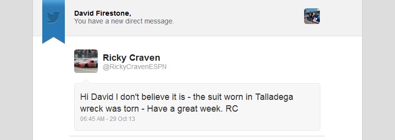 It does show signs of use, but the big question is “was this worn in the 1996 Winston Select?” which was the race that Ricky Craven suffered his worst wreck…