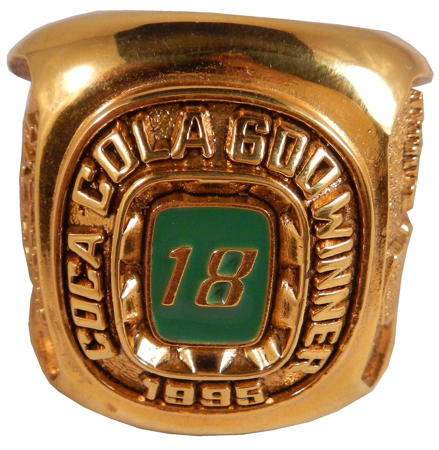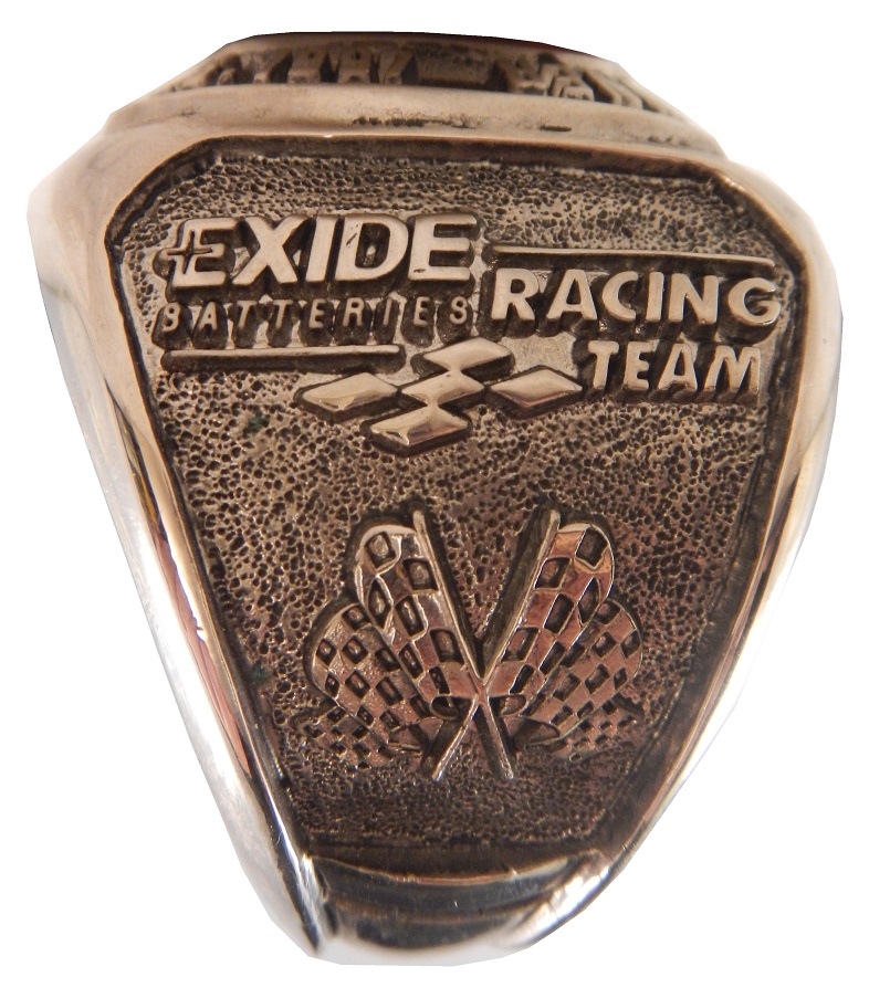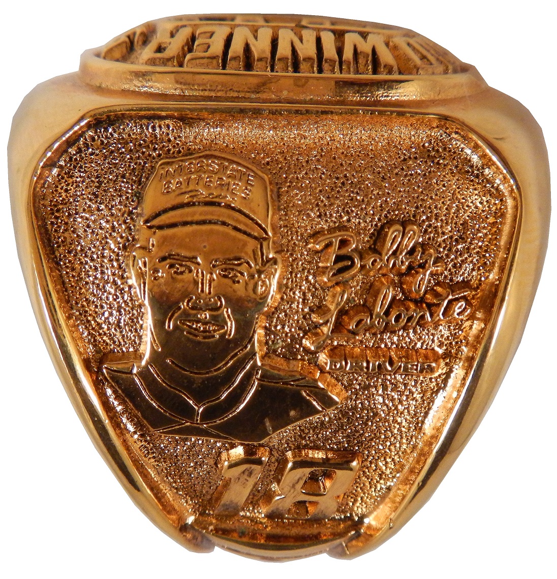 These over sized rings were used as napkin rings for team banquets and then the attendees were allowed to keep them. They were awarded for winning a race, and designed in the same style as championship rings. This first one is from the 1995 Coca Cola 600, which was won by Bobby Labonte. During that race, he started 2nd, led 85 laps, and his brother Terry finish second. It was his first Sprint Cup win, and is done in a gold colored metal, with Labonte’s image, car number and signature on one side, and an image of his car on the other side.labontering1 labontering2 labontering4 labontering3 labontering5 labontering65 years later, in 2000, Labonte won the UAW-GM Quality 500, again at Charlotte Motor Speedway. He started 2nd, and led 37 laps. This ring was given at the banquet to the attendees, it is silver, with an enameled Interstate Batteries logo on the top, Labonte’s name and car number on one side, and Interstate Batteries and Joe Gibbs Racing logos on the other side.labontering2-1 labontering2-2 labontering2-3 labontering2-4 labontering2-5 labontering2-6It briefly spread to Roush Racing, where, at the 1997 banquet, these rings were issued to Jeff Burton’s crew for his victory in the 1997 Hanes 500 at Martinsville. During that race, he started 10th and led 92 laps. This silver ring with an enameled 99 logo, a Roush Racing logo, car logo and signature on one side, and an Exide Racing Team logo, and crossed checkered flag logo on the other side.burtonring-1 burtonring-2 burtonring-3 burtonring-4 burtonring-5 burtonring-6The rings are too large for even the largest person to wear, with an inch and a half diameter on the inside. They were never sold to the general public, but like most things, eventually find their way onto eBay. They seemed to disappear after about 2001, and I think they should make a comeback.