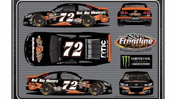 Cole Whitt #72 Bad Boy Mowers Chevy SS-New sponsor for 2017, black with orange cutting edge designs on sides. F